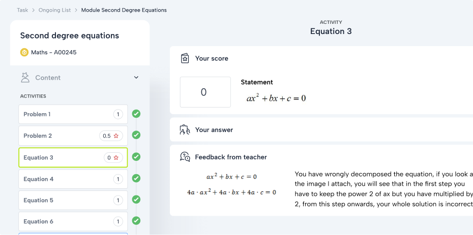 Leemons ofrece una amplia gama de funcionalidades tanto para la revisión del contenido como para la evaluación del conocimiento: bancos de preguntas y tests, actividades y tareas evaluables, proyectos grupales… con un sistema de comentarios que permite a los profesores proporcionar feedback de valor a los estudiantes para ayudarles a progresar.