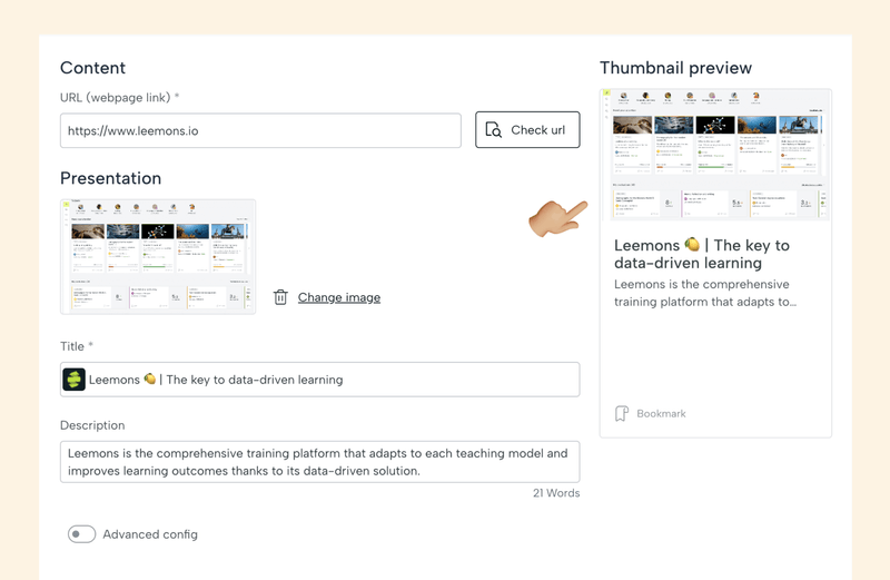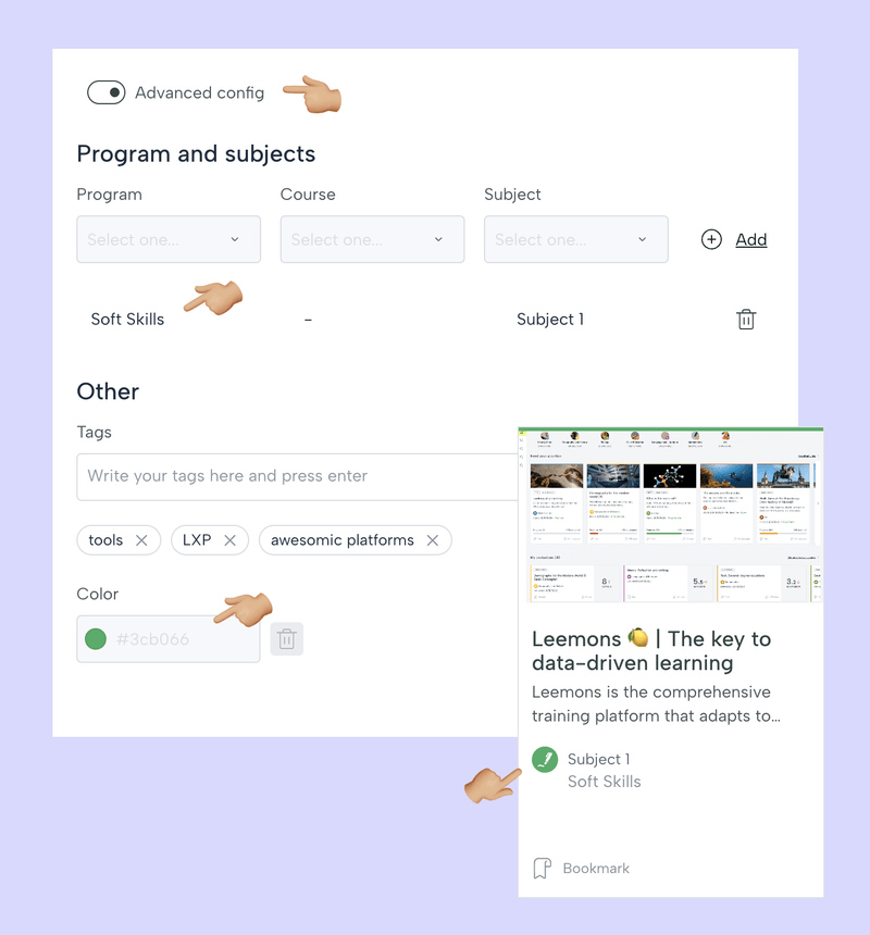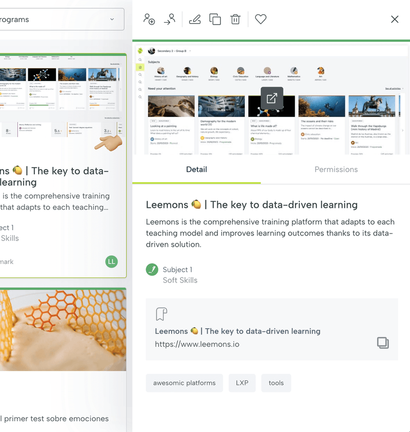Los marcadores te permiten vincular contenido externo a Leemons y organizarlo de forma sencilla y accesible.