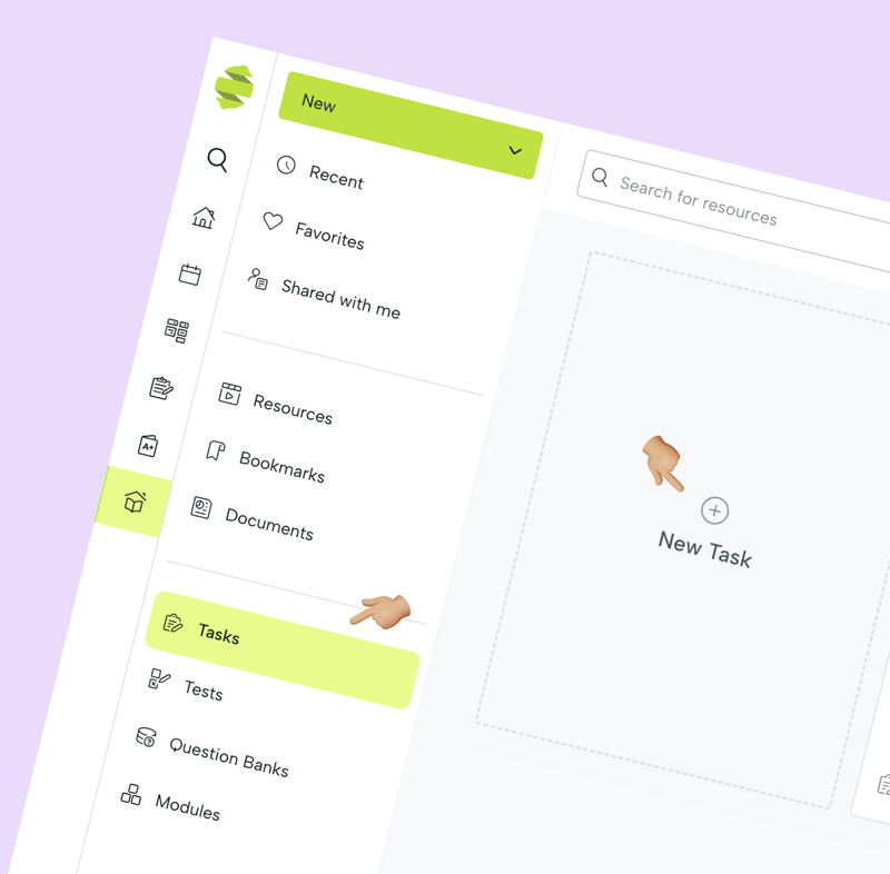 Haz clic en «Nueva tarea» en la sección correspondiente de la biblioteca o en el menú «Nuevo» de cualquier otra sección.