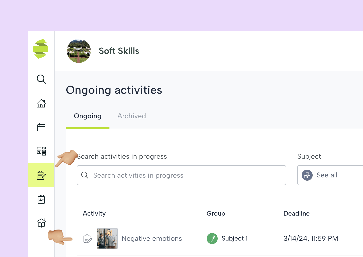 A partir de ahora, como profesor, podrás encontrar la tarea en la sección «En curso» de la plataforma junto con otras actividades que hayas asignado anteriormente. Al hacer clic en la fila de tareas, puedes ver las estadísticas de ejecución, las entregas individuales y otros datos de progreso.