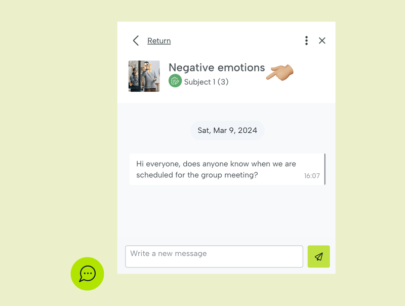 La comunicación entre profesores y alumnos es clave para crear equipos de alto rendimiento. Entre las funcionalidades interconectadas de las actividades, Leemons crea automáticamente en Comunica un canal de chat para la tarea cuando se asigna a los estudiantes.