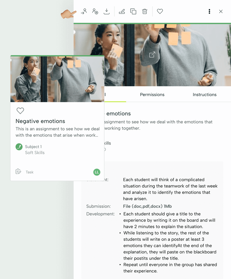 Vamos a explicar cómo diseñar una tarea en Leemons. Como ya conoces la biblioteca, algunas partes de este proceso te resultarán familiares, otras son específicas de este tipo de contenido.